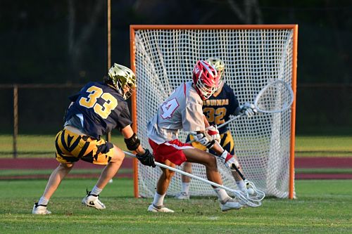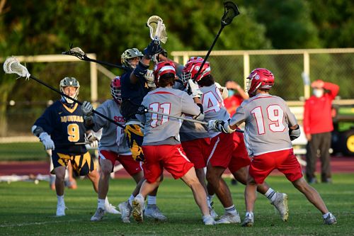 STA got off to a fast start as they jumped to a 2-0 lead with goals 62 seconds apart. Nico Cash opened the scoring at 8:58 as he took the up top feed from Trace McDonald behind the net for the step down to the low left and at 7:56 it was Chase Garey gathering a loose ball in front of the cage for his own low shot. At 6:12 it was Timmy Martin responding for the Scots on a solo dash by the long pole down the right alley and his right hand hit the top of the net for 2-1. Anthony Borodiak tied it up at 3:00 as he face dodged twice from the left wing and got to the front to finish for 2-2 after one.The teams went back and forth in the 2nd but SA was sloppy with possession (6 turnovers in the period versus 1 SOG) but STA was not able to take advantage and the half ended still tied at 2.SA finally broke the tie, on the only EMO goal of the game, at 7:48 as Tristan Moss found Borodiak on the low left after a left-wheeling series of passes and Borodiak ripped one just inside the post for 3-2. With 1:28 left Moss took the Jack Schulte feed on the right alley and found the net with a bounce shot to the high left and 4-2. STA got that back on a 5 on 5 as Robert Gazzano got off a low shot from the middle off a rebound to take it to the fourth at 4-3.
