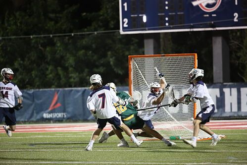 Oxbridge opened the scoring at 10:53 as Davies found Reece Riccardo cutting to the low left and his behind feed was potted by Riccardo’s left hand to the right side for 1-0. Douglass tied it at 9:14 unassisted as he got under his defender at left GLE and got to the crease for the right hand high putaway. Sanderson finished off the 3-2 fast break (sorry, missed the assist if anyone can help) on the right wing with the left hand bullet to the top short side to make it 2-1 Warriors at 6:05 but Oxbridge answered quickly at 5:51 on one of the more creative long pole assists you’ll see, with Liam Storkerson making an over the head lob pass to Riccardo, who jumped and dunked the shot for 2-2 after one, drawing a penalty too.OA held for possession to start the second and at 11:35 they scored the EMO goal as Riccardo fed the cutting James Dorsey from right GLE for the in-tight right hand shot and the 3-2 lead. Jupiter’s Sousa answered at 7:53 on EMO as Riley Linden’s up top feed found him in the middle for the low turnaround shot for 3-3 and he scored again at 3:33 (too many 3’s there . . . ) as he worked the left wing before firing a right hand low shot for the 4-3 halftime lead.