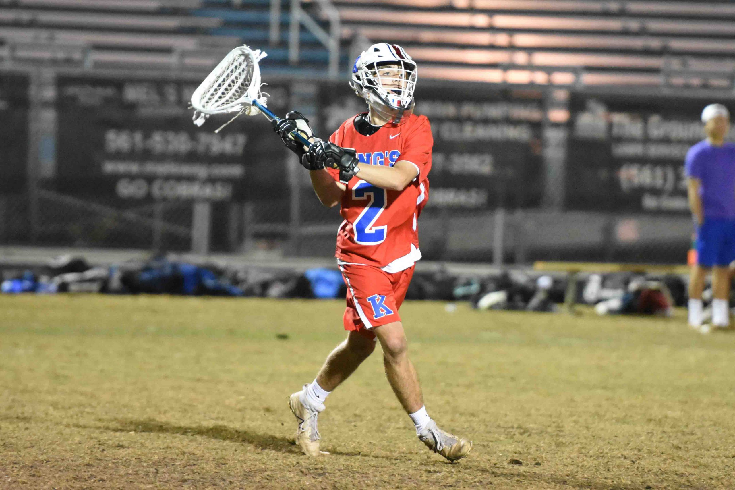 I doubt before the season that this game would capture my attention on the same night that St. Thomas was hosting Belen Jesuit . . . but there it was . . . an undefeated Park Vista hosting a one-loss (to state #1 Oxbridge) King’s Academy.Curiosity.One of my favorite things in covering the sport is to come across the unexpected . . . the unexpected star player, the unexpected overachieving season and the unexpected matchup of two overachievers.Park Vista came into 2018 with a 6-21 record for the previous two years . . . and King’s came in 13-15 the past two years. Yet here they were at a combined 17-1 this year. To be fair, the schedules are not rigorous. Until last night King’s sole win over a team with a winning record was over Wellington, as was Park Vista’s. They pretty much played the same schedule this year and on a comparative basis King’s results were the more impressive, so I would have assumed they were the favorite to win the game.And the game pretty much played out that way.Let’s not overlook what both have accomplished this year . . .The most important accomplishment could be seen in the stands . . . energized fans interested in this matchup . . . from both schools.A nice thing to see in an area that has not shown a lot of fan interest the past few years.There’s another reason to not overlook last night and that came with my talks with the coaches after the game.There’s a 400-pound gorilla these two schools are facing in a sport that only currently sends one team to the FHSAA brackets and no matter what the road to that bracket runs through Military Trail near Palm Beach Lakes Blvd.And both coaches not only know it but they preach to their players that accepting second fiddle as a program is not acceptable . . .That’s something we will watch for in future years. The game itself was very close statistically except at the faceoff circle. TKA dominated that facet and it helped a lot with the extra possessions being turned into goals. Shots, shots on goal, turnovers and penalties were all close but to me the difference came down to two things, King’s was able to execute their offense better, with more off ball movement, and Park Vista seemed too passive on offense until it was too late. There were opportunities for PV to take advantage of numbers and quick re-starts and they did not recognize it.These are both young teams and that’s a part of the next level of lacrosse accomplishment, the IQ. The skills are evolving nicely for a number of the players on both sides but too many times a player tried to carry through traffic and not look to take advantage of space off ball and that’s the type of play that might work against the weak teams, but has little chance of success when playing up. That’s what is missing right now for both, that next level of recognizing what will bring you to that level where they can challenge for a district crown and beyond. The 400-pound gorilla does it as well as anyone in the state. I hope the PV fans turn out Thursday and see what they might be shooting for. TKA jumped out at 8:32 of the first as Coby McDonald worked the right wing, getting to the front right of the cage and hitting the low left corner unassisted. McDonald followed that up at 3:21 as he dodged from up top to the right alley, firing a 15-yard bounce shot into the cage for 2-0, also unassisted. Chris Erneston then stretched it to 3-0 with 1:09 left as he went down the left alley and nailed a left hand high short side shot.The second quarter went back and forth as both goalies made saves and it wasn’t until 1:29 left in the half that PV’s Max Edelstein was able to face dodge down the middle before finishing with the right hand low. The lead was cut to 3-2 47 seconds later as Boyd Lane scored unassisted, as he dodged from right top to the middle and finished with the left hand to the top right corner but with 19 seconds left it was TKA making it 4-2 at the half Erneston split 2 defenders on the low right side before shooting low.TKA opened up strong in the third quarter as they took advantage of a penalty call at the end of the second quarter, with Erneston feeding McDonald on the left wing from up top, and his step down right hand found the upper corner for 5-2 at 11:36. Michael Kolkana then converted the McDonald feed from the right wing, as he cut down the middle, finishing high with the right hand for 6-2 at 10:39. Presley Almond made it 7-2 at 5:43 as he ran a split dodge from the left wing to the middle for the right hand low shot. PV got that one back with 1:30 left on EMO as Lane took the Jake Sohlden feed on the right wing for the left hand to the high short side to send it to the fourth at 7-3.PV has attempted only 14 shots in the first three quarters and they finally let loose in the fourth, attempting 13 more, but only 4 hit the cage and the clock ran out without any scoring to make it a TKA 7-3 final.This will be the semifinal district matchup next month and we will see how that turns out, this year and further out . . .But for at least this year, it’s really nice to see a meaningful game between two teams with one combined loss, that didn’t include the 400-pound gorilla to the North.We’ll be watching.Park Vista is back in action tomorrow, hosting Oxbridge while TKA travels to Suncoast-Riviera Beach on Friday. Team Statistics Faceoffs: TKA 11-2Shots: PV 27-24Shots on Goal: TKA 14-13Turnovers: PV 15-14Penalties: PV 2-1 Individual Statistics TKACoby McDonald 3GChris Erneston 2G/2AMichael Kolkana and Presley Almond with 1G eachTommy Null with 10 saves PVBoyd Lane 2GMax Edelstein 1GJake Sohlden 1AJake Proctor with 7 saves Thanks to coach Ilardo and Coach Webb for talking to me before and after the game.