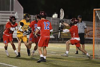 Schillo finally got an isolation on Jacob Webb early in the 3rd, (this was one of those matchups within a game that the serious fan should want to focus on) and Schillo hit the top short side from low right at 11:16. Schillo then tied it up with 2:42 to go as he got just enough room to fire to the top right from distance. Skip Cooledge fed Heim on right wing 45 seconds later and the step down found the top right corner to put AHP in front. Smith tied it up for King’s 38 seconds later, taking advantage of an over and back possession to dash and dodge down the middle, fighting off the trail check and finishing the breakaway to take us to the fourth tied at 7.With 7:46 to go, it was Schillo able to get a little space on right wing, fending off 2 defenders and hitting the low left corner for 8-7, with Aitken evening it late with the goal mentioned above, sending us to OT.Bitar had the ball near left GLE and tried to pass. The King’s defender got on the stick and the ball looped towards the center line with most of the players on that half going after it. The ball took the funny bounce, and inches from being a violation it was scooped by the AHP middie, who then avoided a few checks and found Heim behind the net. The defender took a path that allowed Heim a brief window to curl behind left and finish from the crease while falling down.At least I hope my memory saw all that!A terrific way to finish a terrific game . . .