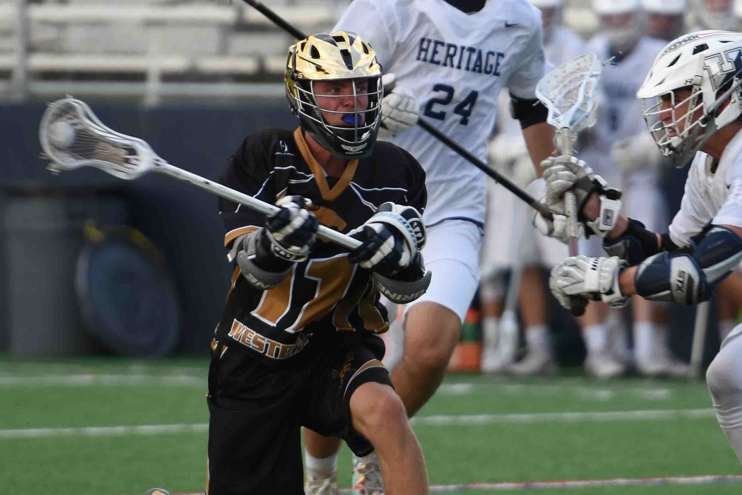 Two teams that turned the corner over the past two years . . . one of which has beaten a few Top 20 programs this year and one looking to do so in their first ‘step up’ game.A very similar story but one team is about a year ahead of the other.Makes for an interesting matchup . . .The main coaches behind both of them are legends in their own way.AH/B, led for a few years by Jeff Goldberg, until his resignation earlier this school year, went 3-12 last season with a rapidly improving season, capped off with giving Saint Andrew’s a solid run late into the game in the District playoff. This season, under former assistant Kevin Barry and staff, has taken flight, going 7-2 coming into this game and with impressive wins over SJP II, St. Edwards and American Heritage/Plantation, as well as a one-goal loss to state #2 Jupiter.Western Davie, 7-9 two seasons ago, brought on Doug Shanahan to take the reins. Shanahan, the first Tewaaraton winner, improved the team to 12-9 in his first year and inculcated his culture into the program. The team also improved over the season and made the FHSAA bracket by avenging two regular season losses in the District. The schedule was not challenging in 2017, as befit a turnaround situation and not really this year either based on last year’s results. The matchup with AH/B, due to the leap forward they made, loomed as the first ranked challenge for Western Davie.Before the game I talked to Coach Shanahan and he admitted this was a game where he’d find out what he truly had. It’s easy to look at the scores put up, the scoring differential in particular, and think this was a team ready for the next step, but until that step up occurs it’s all guesswork.To add to the uncertainty of how the game would play out we had a warmer, more humid night than any other night game I’ve been to so far this season, and it did play a role in the second half as both teams struggled to keep their level of play up as the humidity took its toll. The game itself was exciting as far as the way it played out but left a little to be desired if you appreciate team play. 28 goals and only 8 truly were assisted. 14 goals in the first quarter alone and only TWO were assisted. 51 total turnovers tend to occur when players are trying to do too much individually and that certainly happened Monday, with 18 of them in the fourth quarter alone. If you are a fan of solid defense you kind of got disappointed there too, as the teams were able to walk through each other at times with ease. 17 combined penalties confirm this, as many were the result of reaching instead of moving their feet. 93 total shot attempts with 54 hitting the cage.Okay, now on to the good.Plenty of talent showing on both teams. A terrific second half faceoff performance by Western’s Garret Pistiner. Both goalies, AH/B’s Cole Loyd-Jones and Western’s Patrick Grillo, came up big in appropriate ways. Loyd-Jones saved his best for last with 6 fourth quarter saves as Western strived to pull the game out late. Pistiner, when he got free after the faceoff, was able to do damage on the break. The scoring was spread around by both squads, as 5 players for AH/B scored two or more, with Dylan Barry leading with 4G/1A. Pistiner, Jake Kalinowski and Michael Fox combined for 10 of the W-D goals and a total of 12 players scored for the two teams. The first quarter showed the two teams swapping leads and three-goal runs to make it 7-7 after the first. That’s right, 14 goals in one quarter, on just 18 shots on goal, as both goalies were hung out to dry.Here’s the 1st quarter by itself:11:38 – AH/B 1-0 as Colin Sypek split dodged from the left wing to the middle for the right-hand bounce shot10:03 – W-D 1-1 on the EMO as Pistiner took the left wing feed from Kalinowski up top for the step down9:46 – W-D 2-1 as Kalinowski was able to go cleanly down the middle without a slide and hit the right hand low shot8:44 – AB/B 2-2 on EMO as Emmett Wexler took the Ryan Cohen pass on the crease from right behind, all alone, and finished highThat’s it for the assisted goals . . .6:37 – W-D 3-2 as Kalinowski dodged and re-dodged the right wing and then to the middle for the left hand low6:21 – AH/B 3-3 as Barry curled from the right side and his left hand hit the top short side6:15 – W-D 4-3 as Pistiner popped forward the faceoff and had free space, hitting low as no one stopped the ball5:34 – W-D 5-3 as Donnie Kitchen curled left, face dodged to the cage and finished from the crease3:18 – W-D 6-3 as Fox worked from behind to the right wing and after a spin move was able to score left hand low3:10 – AH/B 6-4 as Tyler Yarnall popped a faceoff forward and had clear sailing himself to finish right hand low2:02 – W-D 7-4 with Chris Cacciola going from the top right to the middle, finishing with the left hand low1:35 – AH/B 7-5 as Sypek finished a fast break down the middle with the left hand to the low corner0:44 – AH/B 7-6 as Yarnall split two defenders down the middle and finished low0:17 – AH/B 7-7 with Cohen dodging from the right wing to the middle and finishing lowAs I tweeted . . . Yuck. I’m sure Coach Shanahan’s assistant Don Goldstein, must have been cringing . . . Google him if you don’t know why. The second quarter finally saw some return to normality and ended up setting the stage for the much more exciting second half.AH/B’s Cohen gave them the lead as the run continued, taking the Sypek pass on the right crease for the quick stick at 11:04. Barry made it 5 in a row at 9:31 as he scooped a loose ball on the left wing and hit the right top corner for 9-7. At 8:11, on EMO, it was 10-7 as Wexler as Chase Goldberg found him on the right wing from up top for the step down mid left. W-D cut that to 10-8 just 12 seconds later as Kalinowski got control of the faceoff, took off down the middle and finished low. AH-B scored twice in 34 seconds to stretch it to 12-8, as Barry took advantage of a turnover 