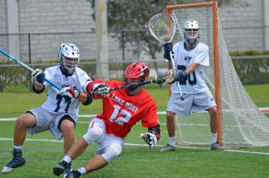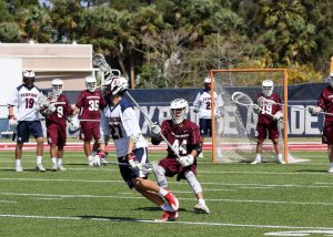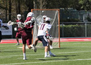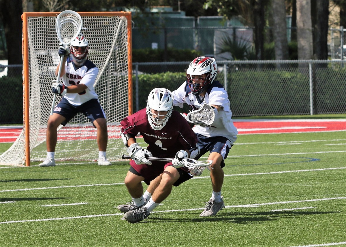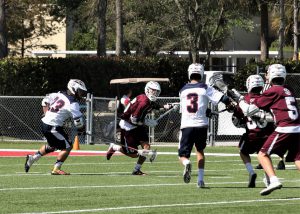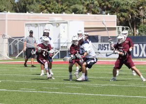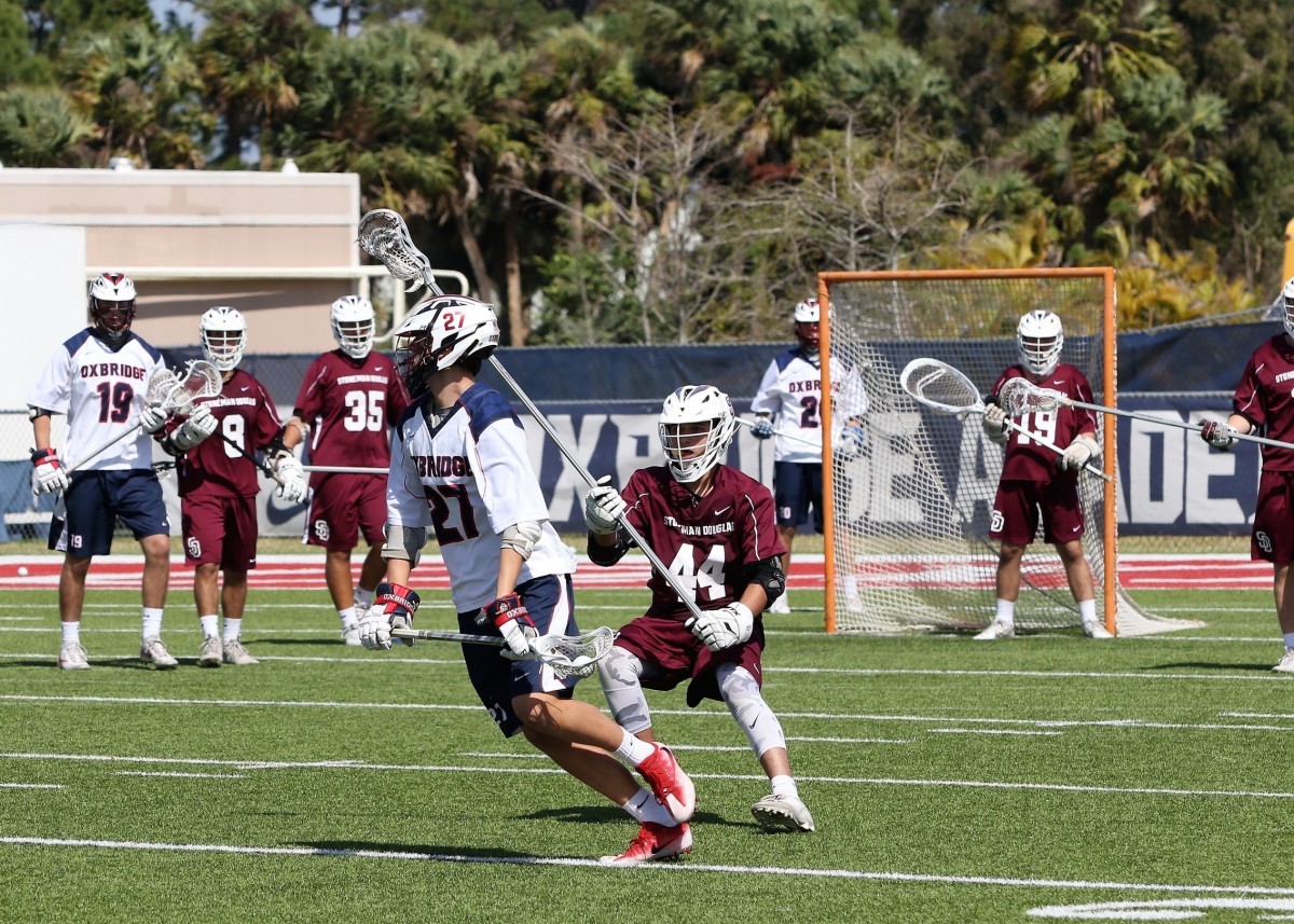 Thanks to Jeff Horwitz for the Stoneman-Oxbridge pictures! If I get any submitted for St. Ed’s-Lake Mary I’ll add those too!EDIT: I received three pictures from St. Ed’s-Lake Mary from Angie Herman and added them to this article; Thank you Angie!Okay, it’s finally over . . .6 games attended in a 22-hour period. Ended with the Florida Tech one-goal win over Lynn on a pretty crazy goal. The FIT long pole, in a 10-10 game, goes on the fast break and ends up getting trapped by multiple defenders about 5 yards right in front of the cage with his back to the goal and decides to shoot the shot over his back, and it happens to hit the net for the game winner!I wanted to make sure I got to that game for a couple of reasons. First, I enjoy the game experience at the Lynn field. An all-seater set of stands set right on the field and easy parking. A great SSC matchup of two teams that embody what the conference is about. But most importantly, it was the last chance to see the Zugelter family, who have been fans of the site since the start. Austin was playing his likely last game in Boca (maybe a late draft pick for the Launch?) and knowing Tom and Joyce for so long I knew they would be at the game even if I hadn’t heard from them beforehand. Austin played a major role in one of my favorite games in the 5 years I’ve written here and it just felt like I wanted to get to Lynn in time. Of course I found them in the midst of the rowdy FIT section of the stands . . . a good rowdy group of cheering parents as the game came down to the wire.We got caught up and just had a nice time talking. Austin is an excellent example of a kid who understood the recruiting process well. All of us who watched him in high school understood what a matchup nightmare he was and that he was easily a D1 talent. But he knew what he wanted to focus on academically and since FIT had the program he was mostly interested in he went the D2 route instead. BTW, he still is a matchup nightmare, and he will graduate this year with the career path right in front of him. Congrats to Austin and hopefully Tom will fill the extra time on his hands next season with some sort of role that keeps him in front of a sport he has come to love. And Joyce has promised me a recipe that I will like . . . The first two games I covered in the article A Glorious Day in Florida Lacrosse! and yesterday morning the matchups got switched as Stoneman faced Oxbridge and Lake Mary faced St. Edwards in the second one. Stoneman and St. Edwards played in the first game on Friday and it frankly was no surprise to see that the teams that played early had an advantage over the teams that played the second game. You would not think that a two hour difference would be that impactful for the early game but both Oxbridge and Lake Mary certainly showed less energy in their play on Day Two. Throw in that in the scheme of things that the games probably meant more to Stoneman and St. Edwards given the time of the season and their previous games and the extra effort was there for them.The weather was absolutely gorgeous . . . can’t use glorious TOO often . . . mid 60’s to start, blue skies with a little cloud cover and the perfectly defined south Florida version of breezy. Got warmer during the games but never to the point of where it was draining to the players or the fans. The only complaint was a lack of coffee given I didn’t get home the previous night until about 10:00pm. On Friday Coach Ross was worried about how much his team had left in the tank and his fears were realized as Stoneman, after an early two goal outburst by Oxbridge, slowly took over control of the game with a collection of long possessions and with less than a minute left in the first half took the lead for good at 4-3 as Daniel Sgammato continued his second half impact on Stoneman’s offense, giving them that extra option that was missing early in the season. This was how the first half ended . . . kind of fun . . . From that point forward, from the first minute of the second half, it was all Stoneman. They went over 7 minutes of possession to start the half before Oxbridge even had an offensive possession. By then it was 7-3 as Sam Bailin started to heat up. FOGO Kevin Horwitz was on his way to a domination of the faceoff circle. Oxbridge then switched up strategy at the dot and Terrell Seabrooks started to come through, with OA then scoring twice in a little over a minute on Jack Kilian’s two goals but that was pretty much it. Horwitz made the adjustments and Bailin came through twice to make it 9-5 and then pulled away in the fourth as 5 different Eagles scored. A last second score by Oxbridge made it a 12-7 final. Coach Burton kidded with me after the game about whether this was the signature win I was looking for, and it certainly looked like it. A proud father of Ryan, having made the trip down from upstate NY, confirmed the opinion. Nice to meet you Sir! The second game was Lake Mary facing off with St. Edwards. Each team were the victims of one goal losses the previous day and both certainly were looking to avoid a 2-loss weekend. Wish I had some more time with St. Ed’s head coach Doug Bailey before the game since I’d like to understand more about the situation with the Vero kids’ transfers and how he’s integrated so many into the team offense and defense so quickly. Also felt bad for Danny Walsh on the sidelines since he had impressed me so much last year in the game I saw at West Boca. St. Ed’s has take a major leap this season and in my pre-season podcast with Mike Loveday I noted that they needed to be considered but that I needed to see early results first. Last year’s schedule was substantially beefed up this year and it was the right choice.Lake Mary has been hot and cold all year and a lot of it is based on shooting and playing 48 minutes. They started the game yesterday as if on a mission as they ran out to a 3-0 lead early in the 2nd quarter as they held