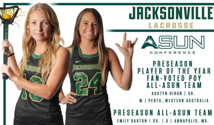 LAKEPOINT, Ga. – A pair of women’s lacrosse players from reigning ASUN Conference Champion Jacksonville University garnered Preseason All-ASUN Conference awar…