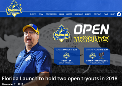 The Florida Launch have announced two open tryouts in early 2018 in preparation for the upcoming Major League Lacrosse season. The first tryout will…