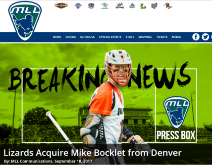 BOSTON (September 18, 2017) – The New York Lizards on Monday acquired attackman Mike Bocklet in a trade from the Denver Outlaws in exchange for New York’s sevent…