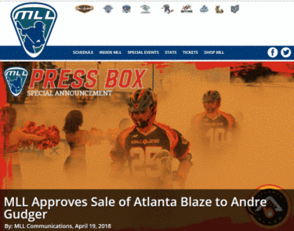 BOSTON (April 18, 2018) – Major League Lacrosse (MLL) and the Atlanta Blaze announced today an agreement to sell ownership of the Blaze franchise to Andre Gudg…