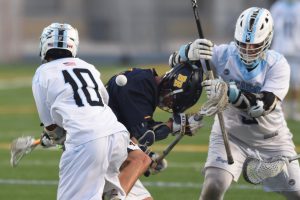 As I mentioned before, SJP came out flying and tied the game at 7 in the first 47 seconds with two goals.As the game went on and the goals mounted I started to waiver as a writer and became more of a fan . . . and I hate to say that I stopped recording the goal plays . . . And this is what my notes look like from this point on . . . SJP 8-7 at 8:32 with 25 from 11Boca 8-8 at 8:32 with 10 from 2SJP 9-8 at 7:43 with 32 unassistedYeah, I pretty much stopped recording WHAT HAPPENED . . . it was getting too much fun just to watch!Boca 9-9 at 4:52 with 2 from 10 . . . I did write FT BRK, which is my shorthand for fast breakAnd finally we got a respite as the quarter ended that wayThen in the fourth I completely broke downBoca 10-9 at 11:08 with 23 from I have no clue . . . now I’m even missing the assistsSJP ties it at 10 with 9:43 left . . . didn’t even see who scored that oneBoca 11-10 at 8:57 . . . guessing it was #10 unassistedSJP ties it 11-11 at 6:48, looks like #3 unassistedSJP takes the lead 12-11 with 3:56 left as #25 scores shorthanded . . . got that oneBoca ties it at 12 with 1:35 left on the EMO as Musa scores . . . had to listen to the announcer for that And then we get the final minuteEach team had a possession and Chaloux makes a marvelous split dodge in the middle, gets to the front and . . . I could not tell if the save was made or he missed the net . . . And with about 25 seconds left Boca gets the ball and sets up the clear, which looked fine until the outlet pass was dropped and when the Boca player went to pick up the ball . . . well, you know what happened from above . . . And I think it was Gildea that scooped up the ground ball instead and headed down the left wing while the clocked ticked down. Chaloux headed to the net and camped out in front. the pass got through to him with two defenders trying to tie his stick up but he muscled it away and put home the winning shot from the crease with 8 seconds left to win the game.At that moment, no one needed a cup of coffee.Just maybe in a couple of days all of us in attendance (sorry Wells and Ernie, shouldn’t have left early!) can look back and remember the wonderful thrill ride we all went on that second half.Maybe the off-field story didn’t really have too much to it this year like last year’s did, but boy did we make up for it on the field this year.What a start to the playoff season.Thank you all four teams!