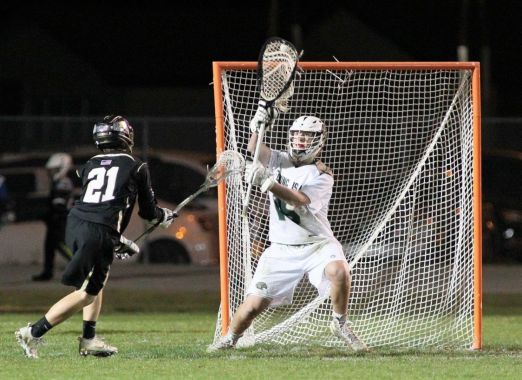By Mike Zima, CorrespondentSophomore Korbin Hamilton saved twelve of fifteen shots on goal to support a stifling effort by the Fleming Island defense as the Golden Eagles downed visiting Gainesville Buchholz 9-3 Friday night.“Their goalie was lights-out, and played a fantastic game,” said Buchholz coach Casey Adams. “The best we have seen all year.”Hamilton saved all five Buchholz shots on goal in the first two quarters and made seven more saves in the second half, finishing with a sparkling .800 save percentage. He had help from the Golden Eagles defense, particularly long stick middie Justin Szafranski and defender Zane Phillips. Szafranski led Fleming Island with six ground balls and three forced turnovers, while Phillips held Corey Horner, the Bobcats top scorer entering the game, without a goal in man-to-man defense. The Bobcats’ inability to get around or through Fleming Island’s defense forced them into long-range, low quality shots.Buchholz goalie Connor Burns matched Hamilton save-for-save for a quarter and a half, but eventually wilted under constant fire. The Golden Eagles’ Max Michaels opened the scoring by scooping up a loose ball in front of the crease and shoveling it into the net. Forty seconds later, Eric Dobson scored from long range off of a feed from Szafranski, giving the hosts a 2-0 halftime lead.Dobson, a freshman, and Patrick Schreiber finished with hat tricks for the Golden Eagles. Schreiber scored both of Fleming Island’s goals in the third quarter, one off of an assist by Dobson, as the hosts took a 4-1 lead. The Golden Eagles put the game away with four consecutive goals between the 7:27 mark and the 2:02 mark of fourth quarter. Schreiber started the run by finishing a fast break started by Szafranski, while Dobson ended it with another long-range laser.Scotty Sorgi, Dawson Kizzar and Chad Jones scored goals for the Bobcats, who played without four starters due to injury or student government conflicts. Burns finished with 11 saves.Entering Friday’s contest having dropped four of their last five games and having been eliminated from post-season play, Fleming Island coach John Hawley delivered an ultimatum at an hour-long team meeting Thursday.“I told them, ‘We can either throw in the towel, or we can roll up our sleeves and go after it,’” said Hawley.The Golden Eagles responded with their best effort of the season, dominating possession against a team that had beaten them in 2016 and which entered this game with a 5-2 record. Fleming Island took eight of the game’s first nine shots, and nine of the first 12.“We played with a lot more intensity, and we were a lot more disciplined,” said Hawley. “Hopefully this will be a kick start for the rest of the season.”Both teams return to action on Tuesday, March 7. Fleming Island, now 3-4, hosts St. Augustine in a non-district game, while Buchholz entertains Newberry in a District 3 contest.