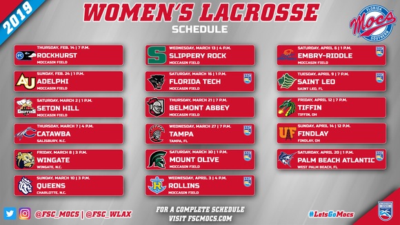 via FSC press release LAKELAND, FL – Florida Southern College women’s lacrosse head coach Kara Reberreleased her schedule for the 2019 season on Wednesday. Entering its second season on Moccasin Field at the Barnett Athletic Complex, the Mocs will take to the field nine times a home. Florida Southern will make two trips out of the state of Florida with trips to North Carolina (March 7-10) and Ohio (April 12-14).Florida Southern’s 2019 opponents consist of a pair of teams that made an NCAA Tournament appearance last year (Adelphi and Florida Tech) and three additional teams who ended the season ranked in the IWLCA top 25 (Rollins, Tampa, and Tiffin). Also included in the mix are a trio of opponents the Mocs will face for the first time ever (Findlay, Slippery Rock, and Wingate). The Moccasins’ 2019 foes combined to go 189-120 a year ago, good for a .612 winning percentage.