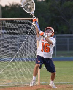 Okay , the crowd didn’t go wild (not for lack of size of it, it was a BIG crowd last night) but it’s not MSG with 19,000 so we’ll just say it was a pleasant surprise to see him be able to play after missing the entire season . . . and he did make a heck of an impact. If this game was a 44 minute game (okay technically 43:58), Jupiter wins this game easily. But in the last 1:02 or less of each quarter Benjamin outscored Jupiter 5-0.That’s pretty amazing.Austin Michels came up with 17 saves for Benjamin and shut out Jupiter for the last 22:27 of the game.And NEITHER TEAM scored in the fourth quarter.Jupiter had their chances . . . including 2 minutes of Man Up with 2:19 to go, but the Benjamin defense and Michels rose to the occasion to hold off the potential overtime.There even was an amazing call that wiped out a Jupiter goal late in the third quarter . . . a correct call that I was not even sure what the rule was. The referee who called it clarified it to me so here is what happened:Late in the third Benjamin had rallied within a goal and there was a goalie interference on Jupiter, giving Michels a chance to make an outlet pass on the delayed whistle. That pass was intercepted by Michael Dean about 5 yards away and Dean was able to find the net quickly with the shot that would have made it 8-6. It happened so quickly that the ref had to make a quick call to waive it off, which was the correct call. If it was a delay for a Jupiter player being in the crease instead I believe the ref would have more discretion to let the play stand, but goalie interference does not have that discretion. A proper call at a tough point in the game . . . and I doubt anyone there would believe it would be the last time a shot went into the net for the Warriors.So many other interesting things in this game. A number of momentum changes.7 goals for Jupiter and 7 goal scorers. 4 2-goal scorers for Benjamin.Jupiter actually put more shots on goal than Benjamin attempted, but the Bucs hit the cage with over 70% of them.And a third quarter that any boxing fan would recognize . . . when both teams landed knockdowns. Jupiter scoring three times in 1:27 to start the second half and take the 7-4 lead, only to see Benjamin tally the last four goals to go back up 8-7. And then there was a frightening moment late in the game too.In those last few frantic minutes of defense by the Bucs, a Jupiter player up top middle was able to step down and rip a shot that looked like it caught Benjamin sophomore middie Blake Chami on the side of the helmet and he went down in that scary manner of slowly, staying down for awhile before being helped off the field. He didn’t exactly look like he was shaking it off easily afterwards.Stick manufacturers, pay attention.Your stick designs are starting to endanger the kids and the game.And to the rulemakers . . . you are supposed to control the game, not the other way around. Make it easier to take the ball away and harder to wind up for shots that are less accurate. I have seen FIVE instances of this happening this year with a kid getting nailed by a wayward shot, more than ALL FOUR PREVIOUS YEAR’S COMBINED. No kid should be able to stickhandle through all 6 defenders, getting pinballed, and still be able to hold on. That tradeoff needs to start to favor shooting accuracy, not shooting power or ball carrying.It will make the game safer AND better.Please re-visit this ASAP. I might not be the best to listen to but someone like Richie Moran is, and he has been saying this for awhile.Listen to him, not me.