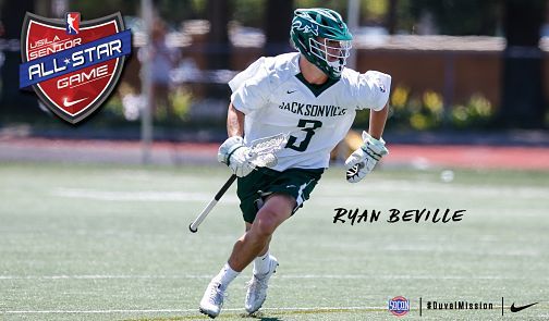 For the first time since 2011 – and just the third time in program history – a member of Jacksonville University’s men’s lacrosse team will represent the Dolphins at the United States Intercollegiate Lacrosse Association’s 77th Annual North/South Senior All-Star Games, as midfielder Ryan Beville was selected to the Division I/II South Team.
