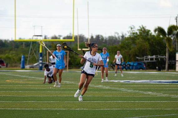 via AMU press release – photo by Mariano Lacayo BOX SCOREAVE MARIA, Fla. – Junior Emma Davis registered four goals to increase her team-leading total to 21 this season, but it wasn’t enough as the Ave Maria University women’s lacrosse team dropped a 23-9 decision vs. No. 7 Life (Ga.) University on Wednesday evening at Gyrene Field.With the loss, the Gyrenes overall record slips to 1-4. Each of AMU’s three losses this season have come against opponents ranked among the top nine nationally. Life improves to 8-3 following the victory.The two teams traded goals in a span of just 29 seconds just under three minutes into the action. Maria Arvizu scored the first of her seven goals on the night at the 27:47 mark to put the Running Eagles ahead 1-0. Jeanine Sullivan evened the score at 1-1 for AMU at 27:18.Two more goals for Life by Arizu and Brianna Freeman increased the margin to 3-1 before the Gyrenes punched the net again on a shot by Aiyanah Simms that trimmed the lead to 3-2 at 22:12.Life then took control with five consecutive goals by five different players over the next seven minutes to take an 8-2 lead.Davis added the first of her two goals in the opening half at 13:22. The Running Eagles closed out the first half with five of the final seven goals to go into the break ahead 13-6.Life outscored the Gyrenes 10-3 over the final 30 minutes to seal the victory.Joining Davis among the AMU scoring leaders was Simms, who finished with a pair of goals. Samantha Freeze, Sullivan and Emma Baughman each posted a single score.Life outshot the Gyrenes 32-23 and committed 18 turnovers to AMU’s 21.The Gyrenes return to action on Wednesday, April 7 when they host Webber University on Senior Day at Gyrene Field beginning at 6 p.m. EDT.