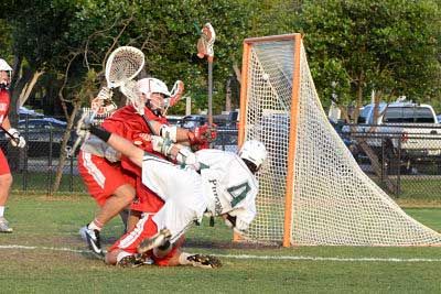 Pine Crest scored first on Michael Diener’s EMO bounce shot at the 6:03 mark on an assist from Zack Smith. 25 seconds later David Tescher scored on a fast break off a crease feed from Cody Shamon. Two minutes later Shamon scored unassisted on the EMO off a shot from the right wing. PC shot the ball an incredible 20 times in the quarter and put 15 on net. Palmetto goalie Cameron Brooks stood on his head on the way to 17 saves on the game.