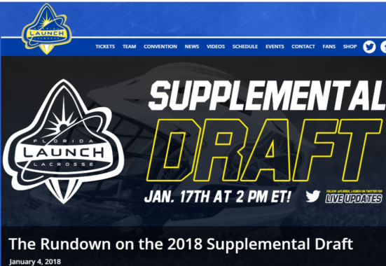 On January 17, Major League Lacrosse will hold its annual Supplemental Draft starting at 2 P.M.This draft includes 12 exciting rounds where teams will select players to add to their rosters for the 2018 season. Any player not currently on a team’s 23-man protected roster is eligible to be picked up. Based off of the results from the 2017 season, the Boston Cannons get the first pick in the 2018 Supplemental Draft, while the Launch will receive the seventh pick in the first round.The Supplemental Draft is the first step to build on the success of last season and start forming a championship team entering the new season starting April 22. Head Coach Tom Mariano is interested in selecting players that will contribute to the team’s success in the upcoming season. His main focus going into draft day is depth, specifically looking for increased “midfield, goalie and defensive strength”. The draft gives Coach Mariano the opportunity to find players who may be under the radar now in the player pool but who can be a great fit for the team culture and vision going forward.In last year’s Supplemental Draft, our coaches picked up notable, talented players who were a huge part to the post-season run we had in 2017. Last year draftee’s include midfielders Martin Bowes, Mike Unterstein, and Reagan Harding, as well as face-off specialist Will Gural, and defenseman Sean Meagher. Bowes played in nine games for the Launch in 2017 and is currently on our protected roster, as is Mike Unterstein, another key addition to the team in last season. Unterstein played in all 15 Launch games, recording four points while contributing 26 groundballs. Our number one overall pick in the 2017 Supplemental Draft was Will Gural who saw action in 12 games, winning 165 out of 335 total face-offs throughout the season and was instrumental in our playoff push. Sean Meagher, selected in the sixth round, played in nine games.All players picked up in this year’s draft will join the following on the 40-man roster to get ready for our official Training Camp in April!Ryan Drenner (A)Kieran McArdle (A)Dylan Molloy (A)Steve Pontrello (A)Tim Barber (M)Martin Bowes (M)Steven Brooks (M)Connor Buczek (M)Nick Mariano (M)Sean Meagher (D)Mark McNeill (M)Sergio Salcido (M)Michael Tagliaferri (M)Mike Unterstein (M)Brian von Bargen (M)John Yozzo-Scaperrotta (M)Liam Byrnes (D)Tucker Durkin (D)Jarrod Neumann (D)Alec Tulett (D)Chris Mattes (F/O)Kevin Reisman (F/O)Austin Kaut (G)Just as excited as us to see who joins the squad this month? Stay tuned on our Twitter (@florida_launch) to get live updates on draft day!And be on the lookout for more info on our website highlighting the new additions to the team!