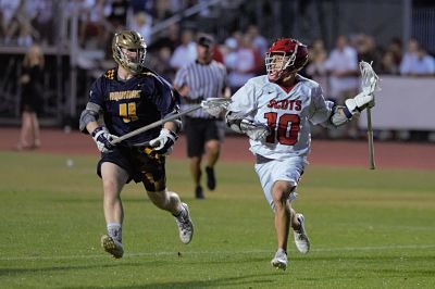 Big crowd. Engaged crowd. Fun atmosphere.A four goal run and a five goal run and 1:29 of overtime.Most of the bigger names on both sides were held in check.But two who weren’t were Ryan Leahy and Justin Lugo.In case you are new down here they are the two goalies.27 saves combined on 42 shots on goal.64% combined.All American level play.I love hot goalie play. And the defenses for both sides have a lot of talent too. Almost no easy looks. No goal in the first half came from inside the defense, all alley dodges and step downs from outside . . . oh, and one old-fashioned worm burner . . .That changed in the second half. Not sure if it was fully the adjustments made by the coaching staffs, but the teams were able to get inside more and that opened up some step down opportunities too. Of all the big names on the offenses it was Carl Klepper who came through the most with 3G/1A, including the game tyer late.Penalties played a part. In the four previous STA games I attended they only took 7 total penalties. Last night it was five and 4 in the first half alone. 2 EMO goals for SA in a one goal game plus the amount of time SA possessed the ball in the first half kept STA out of their desired transition game.Which brings another aspect to the game . . . before the game I felt it might well come down to which team controlled tempo. SA wanted the settled game and STA wanted transition. Except for the 4th quarter when SA did not handle the ball pressure well they did play the game at their pace more than STA did. A little thing but as we say often, little things add up to make a difference . . . like one groundball in OT. The game marked the end of the beginning of SA 2.0.The version that has been transitioning from ‘we are SA, that’s enough’ to ‘we need to outwork everyone to win a title’The first few years of that was good for the growth of the sport in the state in a way that was probably not expected.This year it will be good for the growth of the sport in the state in another way . . . and probably one we won’t fully know yet.I know that sounds a little confusing, or obfuscating if you prefer.But intangibles tend to be that.
