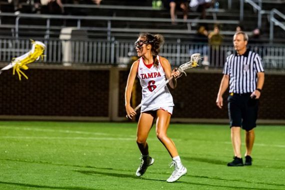 BOX SCORETAMPA, Fla. – The No. 10 ranked University of Tampa women’s lacrosse team defeated the No. 7 ranked Rollins College Tars in Sunshine State Conference play.INSIDE THE MATCHUP:Final: #10 Tampa 13, #7 Rollins 9Records: Tampa (2-0, 2-0 SSC), Rollins (0-1, 0-1 SSC)Location: Naimoli Family Athletic Complex | Tampa, Fla.HOW IT HAPPENED:FIRST HALFLauren McNeill got the ball rolling early and quickly for the Spartans, netting the game’s first goal just over a minute into the game, assisted by Gracie Colombo. Gracie Colombo decided an assist was not enough and scored her first goal of the game, assisted by Abby Hope, at the 22:09 mark. Rollins answered a minute later, scoring on a free position shot to make the game 2-1.Tampa would then reel off four goals in a row in a three-and-a-half-minute span: McNeill again, assisted by Hope (17:08); Genie Santarpio