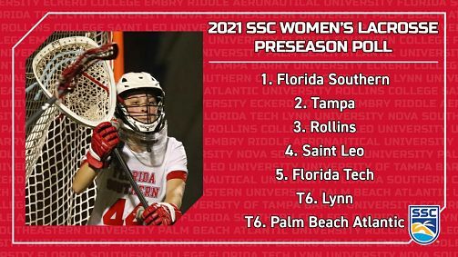 via the SSC press release MELBOURNE, Fla. – Sunshine State Conference women’s lacrosse coaches vote Florida Southern College as the league’s top team heading into the 2021 season. With 33 points and three first-place votes in the poll, the Moccasins are expected to repeat as regular-season champions for the sixth year in a row.The University of Tampa missed the top spot in the ranking by the narrowest of margins. The Spartans gathered 32 points and matched FSC with three first-place nods. Rollins College holds third place in the ranking with 28 points and the final first-place vote. Saint Leo University sits squarely in fourth following 20 points, while Florida Tech is fifth with 15 points. Lynn University and Palm Beach Atlantic University round out this year’s poll tied for sixth with nine points each.Record Book: “SSC Women’s Lacrosse Records: 2015 – 2020”SSC teams played between seven and nine games in 2020 before the season halted on March 13th due to the widespread Coronavirus. Rollins and Tampa finished the shortened season tied with a league-best 6-1 overall record (.857), followed by Florida Tech at 6-2 (.750), and then Embry-Riddle Aeronautical University at 5-2 (.714). Every league team had a winning record when the season came to a halt. Collectively, SSC teams sported a 40-16 record (.714) against non-conference opponents last season.Florida Southern, Rollins, and Tampa all finished 2019 with a 5-1 league record and a share of the SSC regular-season championship. Tampa went on to win the 2019 SSC tournament, a first in program history, besting Rollins in the semifinals and FSC in the championship final. All three teams earned a bid to the NCAA tournament, where Tampa fell to Queens University, and Rollins defeated FSC in the first round. The Tars season came to an end in the national semifinals following an overtime loss to Queens.The 2021 season begins on March 20th, with Florida Tech visiting Florida Southern and Saint Leo heading to Tampa. See the full schedule here. There is no SSC postseason championship in 2021. The NCAA Division II postseason begins May 14th at non-predetermined sitesBelow are the full results of the 2021 SSC preseason coaches’ poll. Coaches are not allowed to vote for their teams (points: 6-5-4-3-2-1, first-place votes in parentheses).