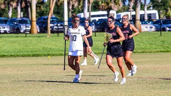 WEST PALM BEACH, Fla. – The Palm Beach Atlantic women’s lacrosse team opened its season on Saturday at the Rinker Athletic Campus against No. 10-ranked Tampa.PBA (0-1, 0-1 SSC) started the game strong, matching every punch the Spartans threw early on, but fatigue and turnovers began to catch up with the ‘Fish as Tampa (3-0, 2-0 SSC) pulled away towards the end of the first half. The Sailfish fought hard until the final whistle, ending the game on a 4-1 scoring run; however, Tampa earned the win, 18-12.Grace Bartlinski led the PBA attack with five goals, including netting her 100th career-goal to start the contest. Kiki Cinotti, Kate LeBlanc, and Lindsey Heffler all tallied two goals each as Cinotti led the ‘Fish with two assists. Anna Laskaris was right behind with a goal of her own.Bartlinski found the back of the net two minutes into the game to give PBA a 1-0 lead. Tampa responded with two goals of its own, but the ‘Fish refused to back down. The ‘Fish hung around as the top-10 ranked Spartans led just 5-4 through the first 15 minutes of action. The Spartans ended the half on a 5-1 run as PBA began to lose its legs towards the end of the period.Tampa continued to pull away to begin the second half. The Spartans took a 17-9 lead with 11 minutes left in the game. PBA tried to make a comeback after a pair of goals from Bartlinski and Cinotti, but the ‘Fish ran out of time, dropping the game 18-12.PBA was outshot by the visitors 33-20, including 28-17 in shots on goal. The Spartans took advantage of four free-position goals on five attempts whereas PBA did not convert any goals on its two attempts. Turnovers cost the ‘Fish during Tampa’s run as PBA totaled 17 turnovers in the game.The Sailfish are scheduled to compete against Lynn on the road on Wednesday. The game in Boca Raton, Fla. is scheduled for 6 p.m.[jetpack-related-posts]