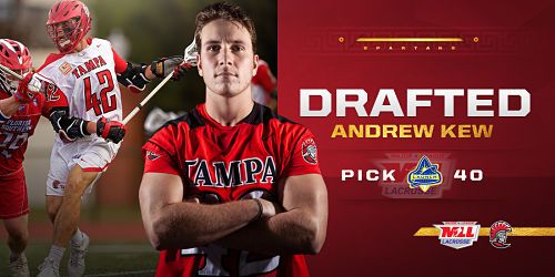 was selected by the Florida Launch as the 40th overall pick. Kew is one of, if not the most decorated Tampa men’s lacrosse players of all time. In the all-time rankings, he is first in goals, first in goals per game, first in game-winning goals, first in shots per game, tied for first in man-down goals, is second in points, second in points per game, second in assists, and second in shots attempted.