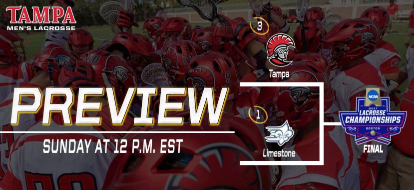 via press release – photo via Tampa web site GAFFNEY, S.C. – Reaching the NCAA Division II Men’s Lacrosse Championship Semifinal for the third time in program history, the No. 8 University of Tampa men’s lacrosse team will meet top-ranked Limestone College on the road at Saints Field on Sunday, May 21 at 12 p.m.The Spartans advanced to the final four after a road victory over the tournament’s south region No. 2 seeded Lenoir-Rhyne University Bears. After a strong first half from Tampa, Lenoir-Rhyne tried to sneak back but the Spartan defense held the Bears.Sophomore Andrew Kew leads UT in goals scored while breaking the NCAA record for goals in a season, now sitting at 85 on the season. Senior Conor Whipple was named the Sunshine State Conference Player of the year for the third time in his career for leading the Conference and squad in points with 94 (35 goals and 59 assists). The attacker is the career record holder in goals (165), assists (184) and points (349).Leading the Spartan defense is the quad of A.J. Ferraro, Charlie Cummins, Marty Heyn and Luke Posner. Combined they have 148 ground balls and 85 caused turnovers. Heyn leads the squad in caused turnovers with 30. Ferraro tops the defense in ground balls with 42 on the season. Three of the quadruplets earned All-SSC honors.Between the posts for UT is senior A.J. Arnold, in his final campaign the goalkeeper is 12-4 on the season with a .530 save percentage while tallying 141 saves in net. Arnold has limited his opponents to 8.42 goals against average.The national runner-up from last season, Limestone College, has earned their 18th appearance to the NCAA DII post season. Last week they defeated the tournament’s No.4 seeded Wingate by score of 14-5. Leading by as much as a nine-goal margin throughout the contest.The Saints are led by the nation’s leading DII face-off specialist, Kevin Reisman. He curently posts a .750 win percentage with 233 groundballs. Their top scorers are Charlie Sheehan, Brenden Smith and Ryan Maciejewski. Sheehan leds the squad in goal with 59 and Maciejewski tops the assists category with 27. Combined the trio has 192 of the Saints total points.Limestone’s netminder Cole Aikens has posted a near perfect record of 14-1. Holding his opponents to 8.15 goals average with 115 saves. The top defenders are Billy Koelmel, Ryan Mulka and Jordan Stouros. Koelmel and Mulka have 17 caused-turnovers each while Koelmel tops the defense with 35 ground balls.Tampa enters the semifinal matchup with a 15-4 overall record while host Limestone is at 19-1. The two teams met on Feb. 25 in Tampa, Fla. for a regular season contest that ended in a 12-10 win for No. 1 Limestone. The Spartans have yet to record a win against the Saints as LC owns a 8-0 record in the all-time series and a 2-0 tally in postseason matchups, ending UT’s season in their 2016 semifinal showdown.Live stats as well as a live video webcast will be available HERE.Fans may follow University of Tampa athletics on Twitter (www.twitter.com/tampaspartans), Facebook (www.facebook.com/tampaspartans) , Vimeo (www.vimeo.com/tampaspartans), YouTube (www.youtube.com/utathletics) and Instagram (tampaspartans).UT also offers free messaging service for text and/or email, which sends alerts and press releases for Spartan teams. To sign up, please register at www.tampaspartans.com. A free app is also available for free download through Apple and Google Play stores. Please search for Tampa Spartans Front Row.