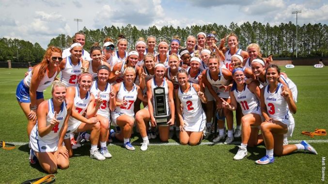 Box Score GAINESVILLE, Fla. – The University of Florida women’s lacrosse team (15-2, 9-0) claimed its seventh consecutive conference championship, and third consecutive BIG EAST Championship, with a 15-3 victory over the Georgetown Hoyas (9-8, 7-2) on Saturday.After a Hoya goal by Morgan Ryan tied the score at 2-2 with 23:08 remaining in the first half, the Gators went on an 11-0 run spanning over 35 minutes of game action to put the contest away.Florida’s defense smothered Georgetown all afternoon, limiting the Hoyas to just three goals on 17 shot attempts. Saturday was Georgetown’s lowest scoring output of the season. Junior Aniya Flanagan set a career-high with three caused turnovers, and collected two ground balls as well. The Gator defense has only allowed 4.2 goals per game over its past five contests.Three hat tricks from Madisyn Kittell, Allie Pavinelli, and Sydney Pirreca led the way for the Gators on the offensive end. Junior Shayna Pirreca added two goals and an assist to round out Florida’s attack.The Gators played most of the game without leading scorer and draw specialist Mollie Stevens, who received two yellow cards less than 10 minutes into the first half. In her absence, Taylor Bresnahan and Brianna Harris combined for seven draw controls, as Florida edged the Hoyas 11-9 in the draw circle.Sophomore goalkeeper Haley Hicklen had a fantastic outing in goal for the Gators, tallying nine saves and a .750 save percentage in 58:40. With 122 saves on the season, Hicklen is just 24 away from breaking Florida’s single-season record of 145.Gators Earn No. 1 Seed