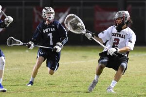 The Dwyer offense got progressively more efficient as the game went on and PBC’s thin midfield eventually worn down, giving up a number of looks from the middle as the slides were not able to get into place. Both goalies played well and gave their team a chance to win. But when you look at the numbers in the second half you see . . . Dwyer 22 shots attempted / 17 on goal and 11 goals versus PBC’s 16/10/6. There’s your margin right there. Also PBC’s turnovers were constant over the halves, while Dwyer had 10 less over the game. Many of PBC’s came because their players weren’t strong on their sticks, something that can be cleaned up by concentrating on it.